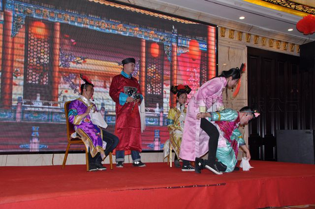 公司總結表彰會結束后,2017年迎春文藝演出閃亮登場。隨著兩位主持人華麗的開場詞,“才藝達人”精心準備的歌曲、舞蹈、小品節目為員工送上了新春的祝福。節目既突出了節儉大方的格調,又不失歡快熱烈的氣氛。現場不時爆出陣陣熱烈的掌聲。同時,在節目演出中還穿插抽獎活動,邀請公司各領導公開抽取幸運獎。演出精彩落幕后,公司黨委書記沈波立致祝酒詞。整個團拜會場面,燈火通明,熱鬧祥和,觥籌交錯,祝語飛揚,董事長王力明等公司領導高舉酒杯,沿桌為全體員工提前拜年。大家齊聚一起,共同慶祝2016年度取得的輝煌成績,在笑語歡聲中暢想著2017年的美好愿景。