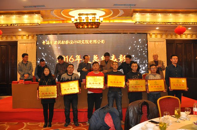 隨后,公司監事會主席于俊江同志作了2016年度監事會工作報告;公司董事、副總經理宋放同志宣讀2016年生產經營目標、管理責任制和項目管理責任制考核獎勵決定;公司董事、黨委書記沈波立同志宣讀2016年度先進集體和先進個人的表彰決定;公司董事、總建筑師胡東祥同志通報2016年度院優評審情況,并宣讀院優表彰決定;公司董事、總會計師鄒繼青同志作了2016年度財務決算工作報告。之后,大會舉行了頒獎儀式。公司領導分別為13個優秀集體、先進集體、優秀班組和先進班組,69名先進工作者和11名優秀管理者及獲得院優工程的單位和個人頒了獎,并對成績突出的生產部門,按要求予以獎勵。