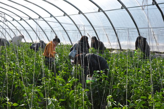 一筐筐鮮紅紅、無污染,還略帶露水的草莓終于被勤勞的雙手從溫棚內“解放”了出來,過秤,結錢。大家帶著勝利的果實,又在另幾個溫棚收獲了青椒、西紅柿等蔬菜。