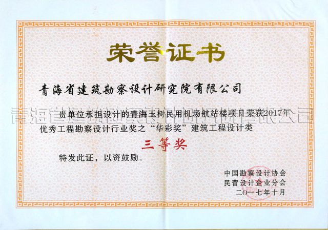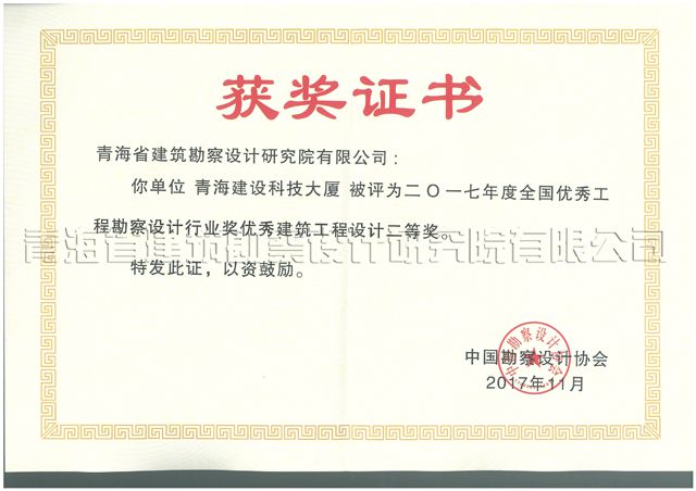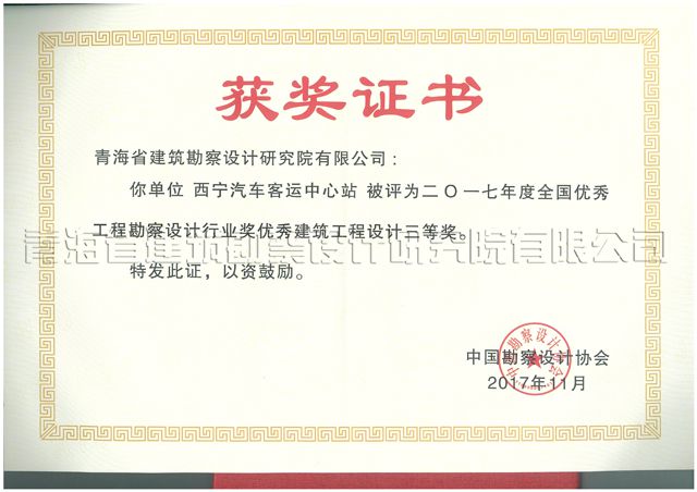 2017年度國優大獎中,公司共摘得1個二等獎、2個三等獎,其中,以胡東祥總建筑師為主創的設計團隊設計的青海建設科技大廈項目二等獎,單翀辰所長為主創的設計團隊設計的西寧汽車客運站項目三等獎,吳昆所長為主創的設計團隊設計的玉樹機場航站樓項目“華彩獎”三等獎,這是繼2015年公司摘得全國優秀工程勘察設計行業獎3項大獎后的又一次新突破、新收獲,這三項大獎的獲得,既是對公司技術實力的高度肯定,又充分體現了公司團隊的合作水平,必將對進一步提升公司作為省院的品牌知名度起到積極的作用。