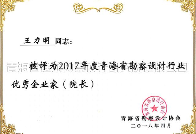 會上表彰了2017年度青海省勘察設計行業優秀企業和2017年度青海省勘察設計行業優秀企業家。我公司被授予2017年度青海省勘察設計行業優秀企業,董事長王力明被授予2017年度青海省勘察設計行業優秀企業家。